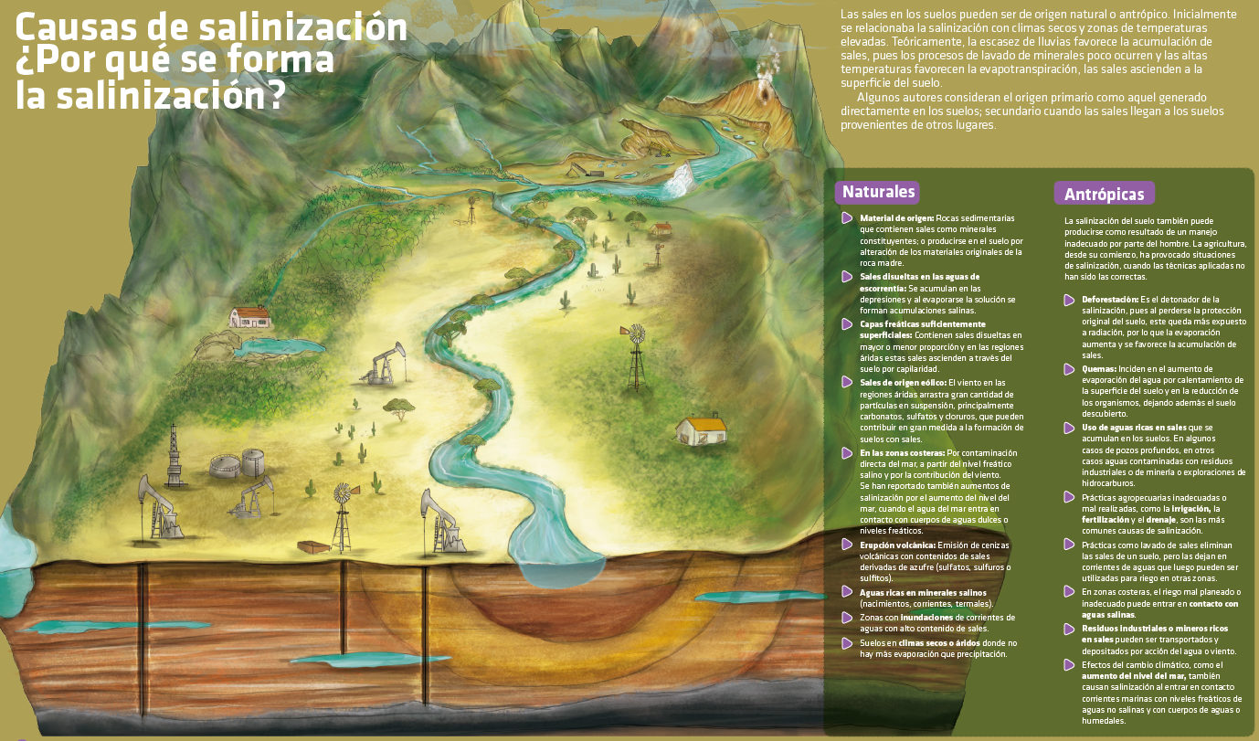 Actualmente el 40% del área de Colombia presenta algún grado de erosión y de esta el 3% presenta severidad, el 455 del total del país es susceptible a la degradación de suelos por salinización y se estima que el 11.6% ya presenta algún grado de salinización, siendo el 1.5% grados severos y muy severos.